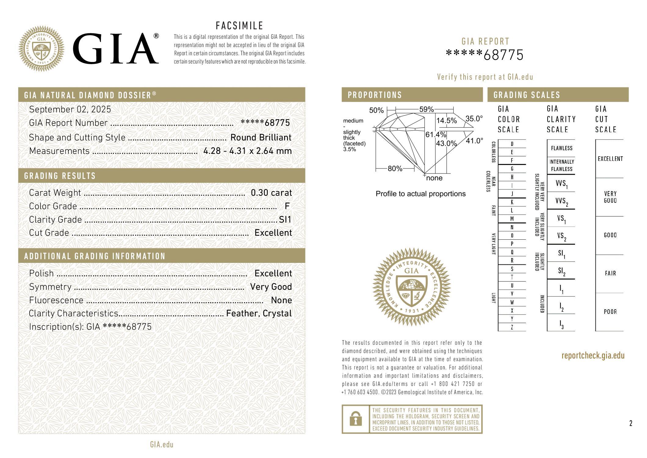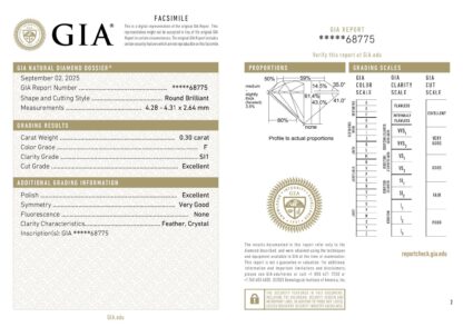 0,30 ct. TW/SI1 (F) GIA Ø4,30 mm